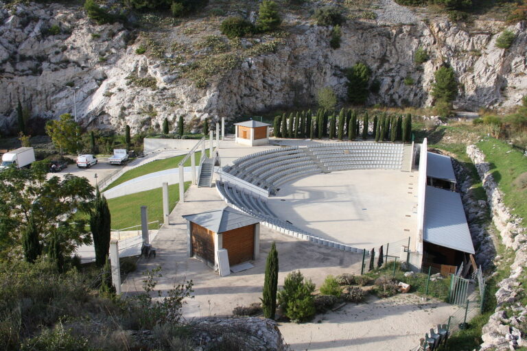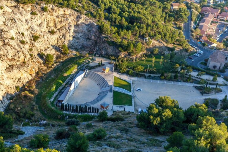 Protégé par un cirque de calcaire éblouissant de clarté, ce théâtre de plein air permet d’accueillir plus de 800 personnes dans un cadre fantastique.
