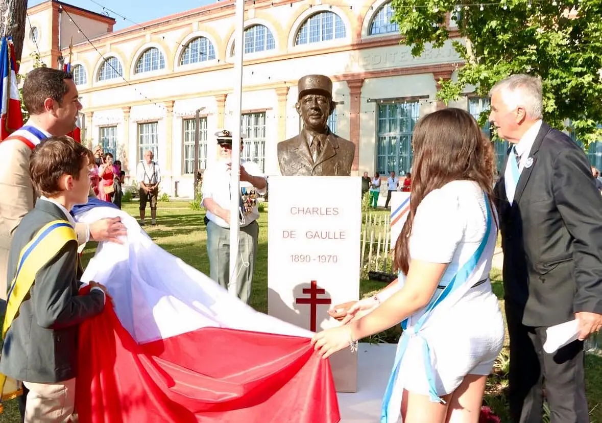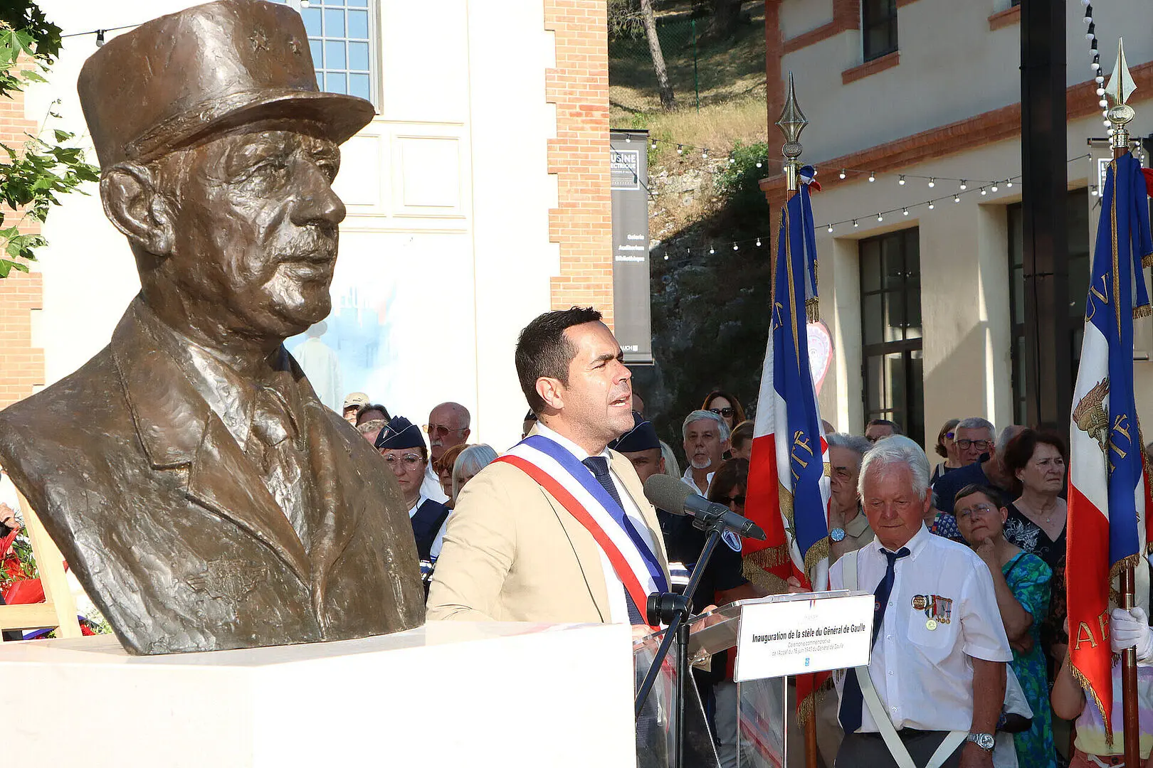 Une stèle du Général de Gaulle a été inaugurée ce mercredi sur le parvis du nouveau Pôle Culturel de l’Usine Électrique lors du 85ème anniversaire de l’appel du 18 juin 1940.