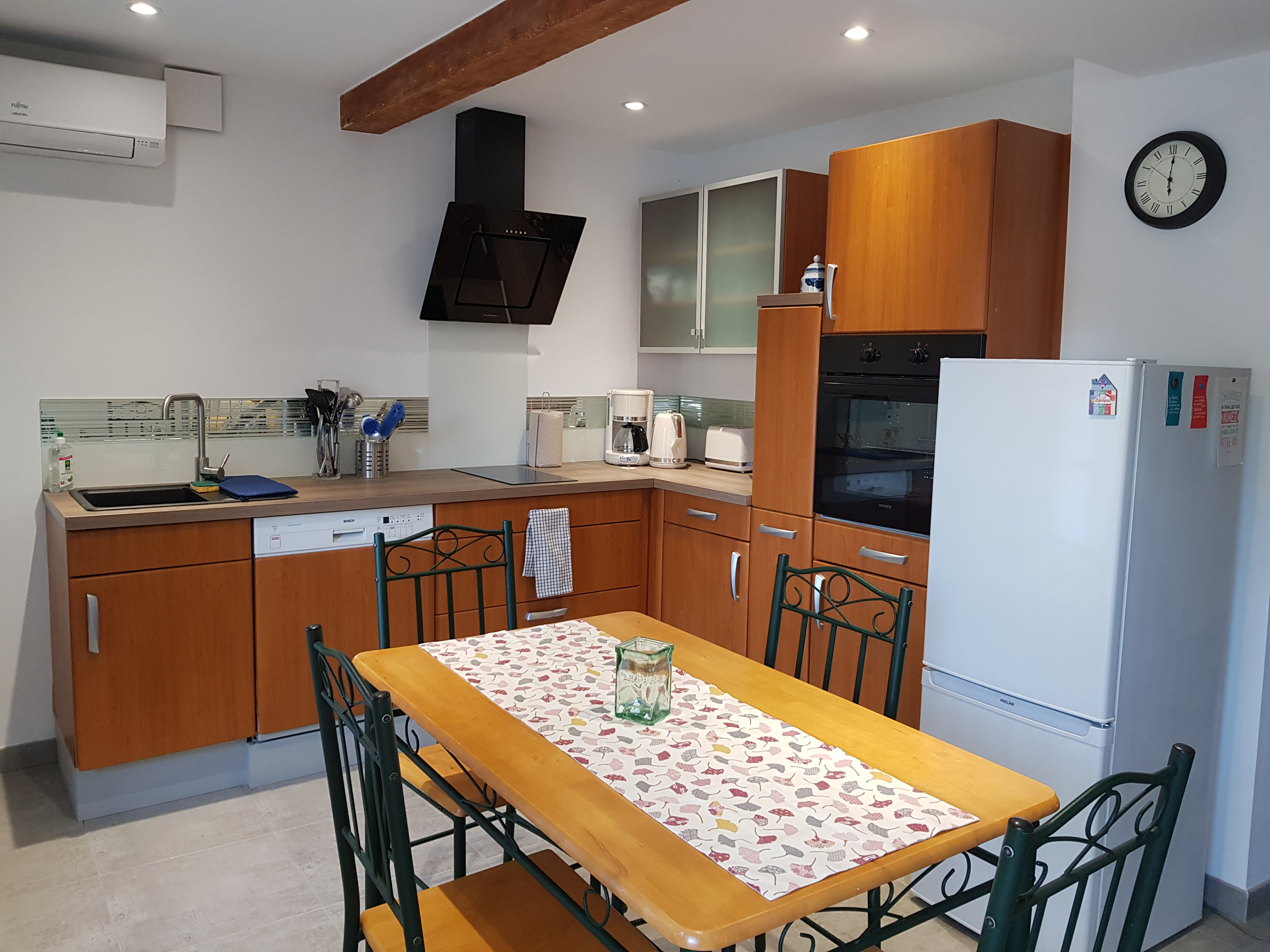 La maison dispose du Wifi gratuit, d’un aspirateur, d’une climatisation réversible, de chauffage individuel dans les chambres, de matériel de repassage.