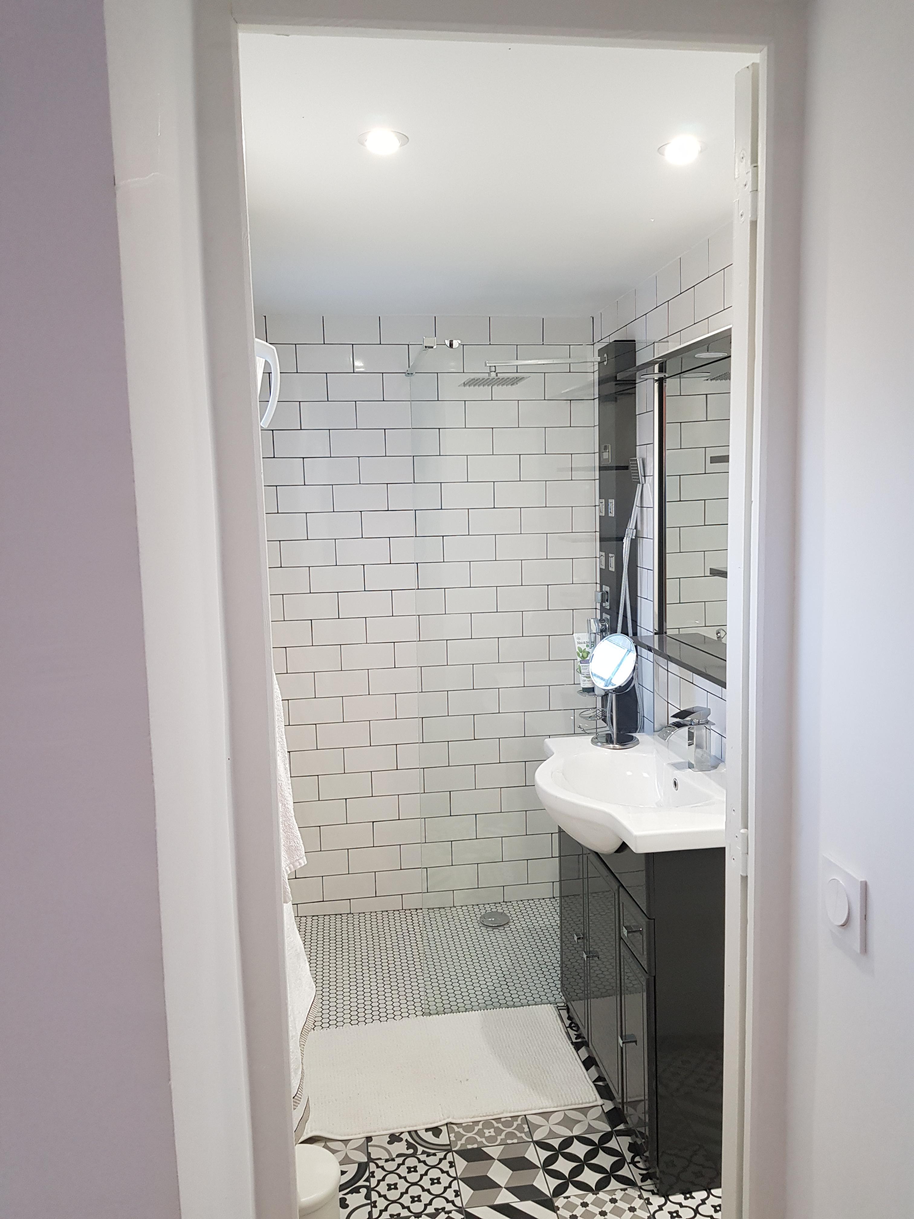 Salle de bain avec douche à l’italienne et toilettes isolées + un espace buanderie avec machine à laver le linge. Sèche-cheveux à disposition.